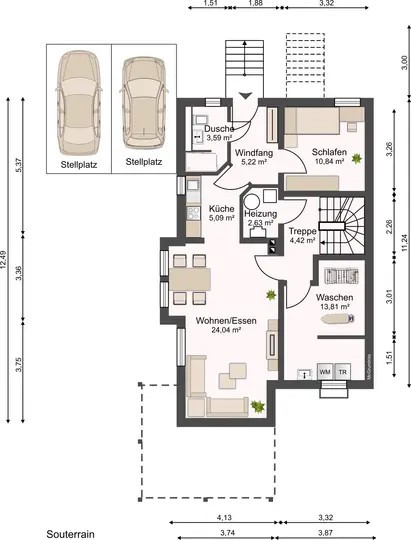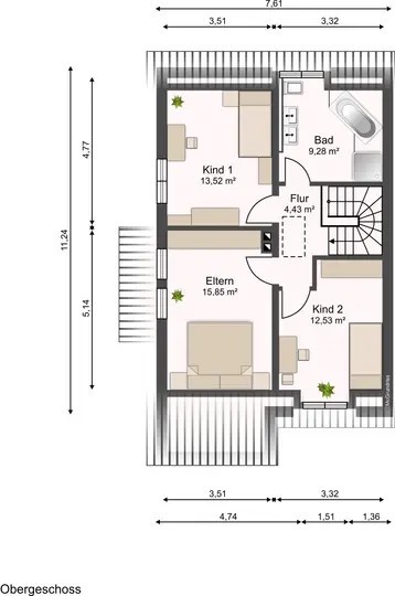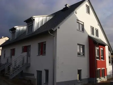 Die Doppelhaushälfte mit Einliegerwohnung wurde in wohngesunder Ziegelbauweise (Poroton 36,5 cm) in energiesparender KfW-60 Ausführung (Stand 2008) errichtet.